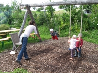 | Barbara, Leon und Jana beim Schaukeln. | |