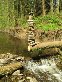 | Sieht labil aus, ist es auch. Eine halbe Stunde später stürzen die obersten Steine runter, der Rest bleibt stehen. | |
